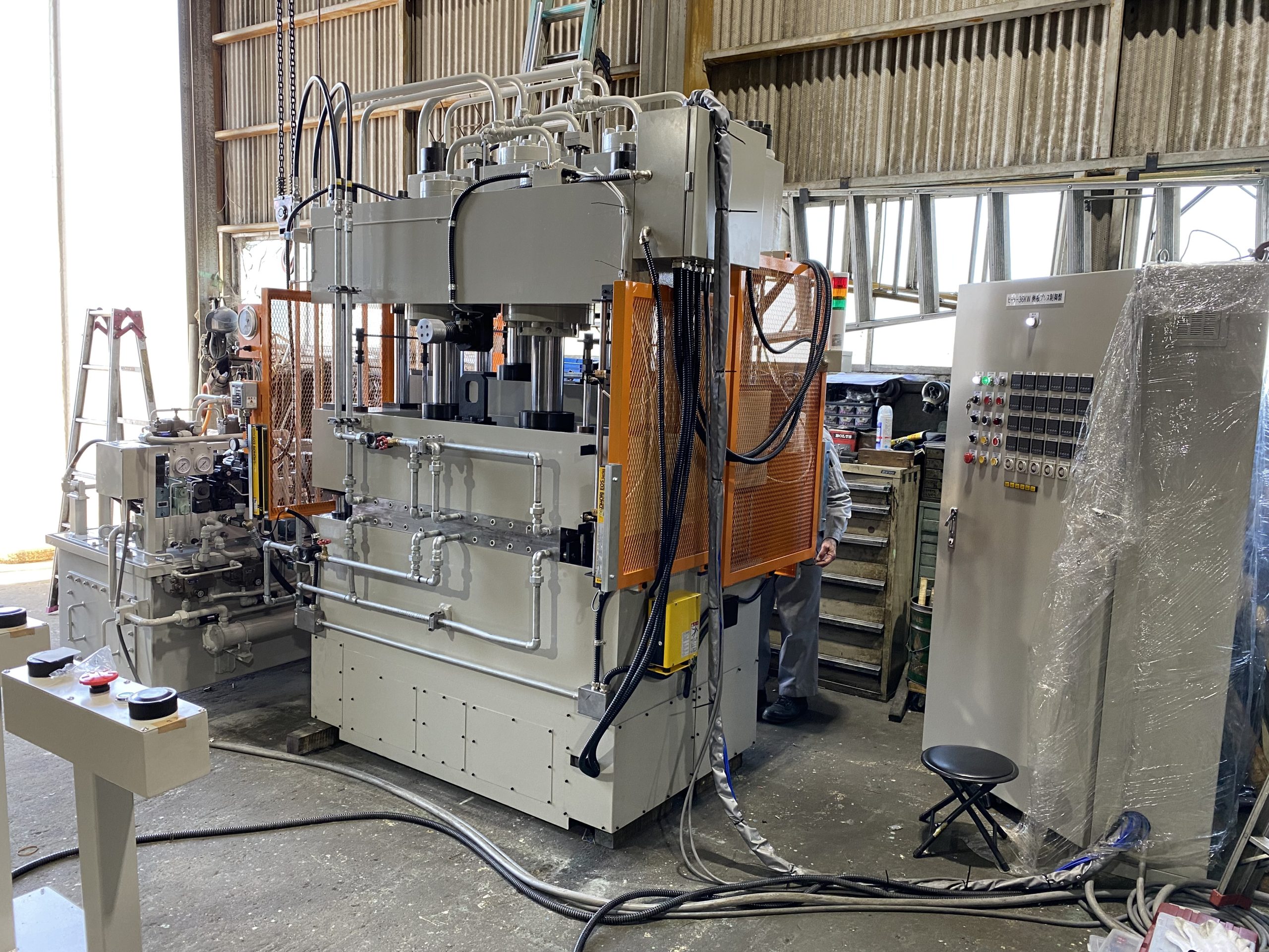 熱盤と冷却盤を一体構造とした油圧プレスです。