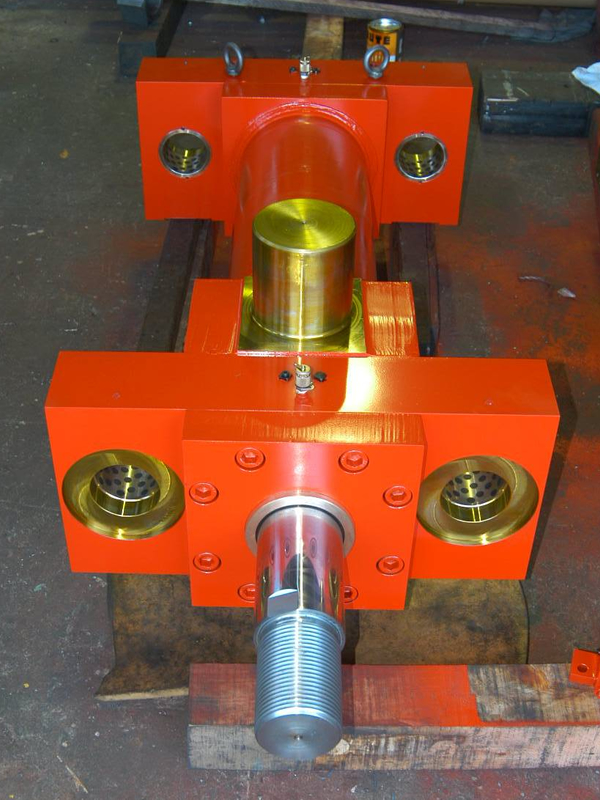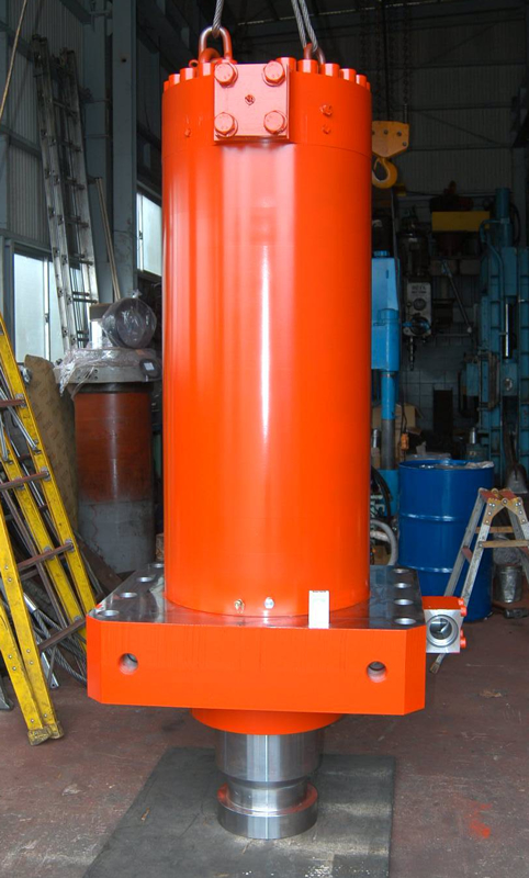 本油圧シリンダーは大型油圧プレス用に設計を致しました、高速作動用にプレフィルポートも設けております。