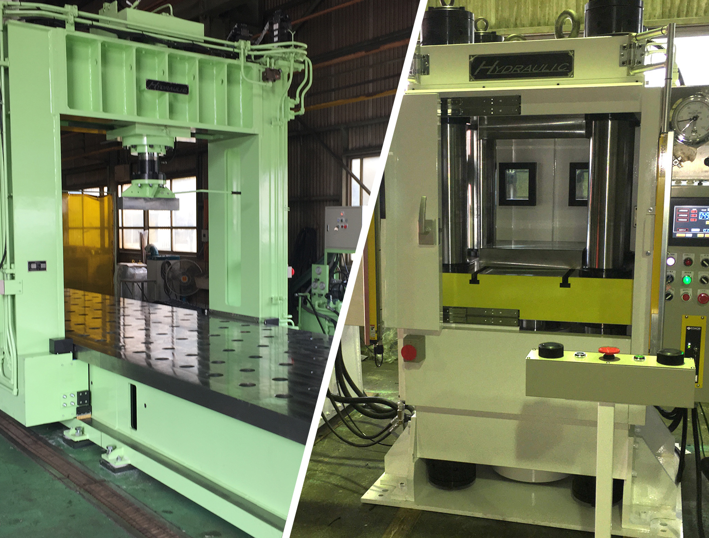 特に、主力製品の油圧プレスは、お客様のニーズに応えるべき、低価格・高品質を常に求め、今以て新たなる開発を続けております、安全性・操作性・生産性 その全てにおいて、ユーザー様にご満足いただける製品作りを目標として日々邁進しております。